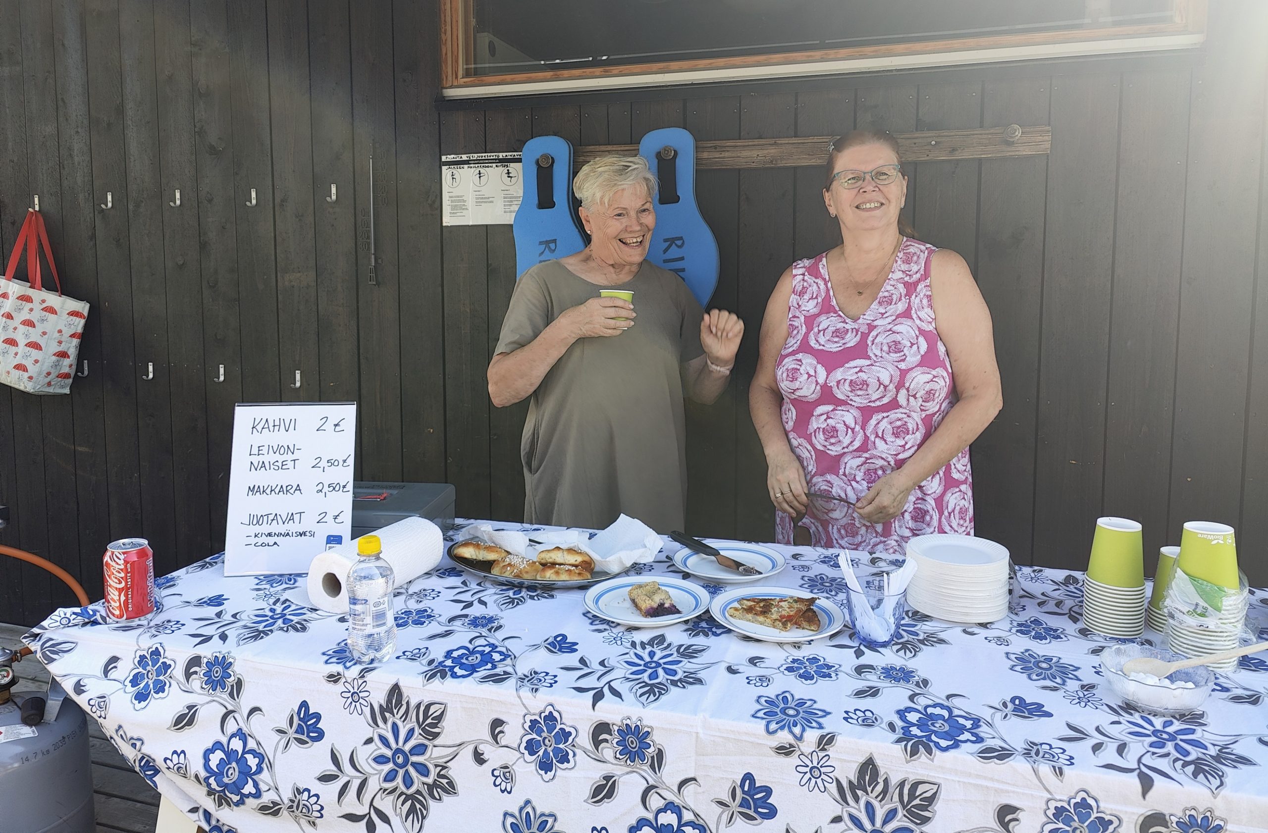 27.7.2025 osallistuttiin Koko kylä pyöräilee -tapahtumaan pitämällä buffettia rantasaunalla. Päivä oli suorastaan tukalan helteinen siksi myyntipöydällä vain näytekappaleet myytävistä leivonnaisista 😊
