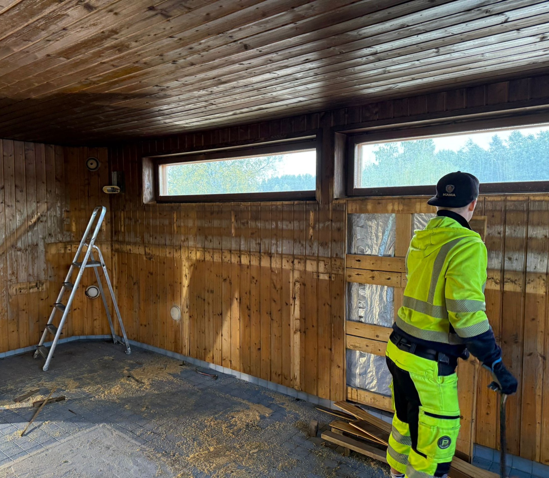 Syyskuussa, heti markkinoitten jälkeen aloitettiin pitkään suunniteltu remontti rantasaunalla. Hommat aloitettiin purkutalkoilla.